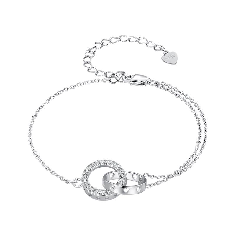 Bamoer 925 Silver Double Circle Bracelet Eternity Adjustable Chain Link Platinum Plated for Women Valentine's Day Gift