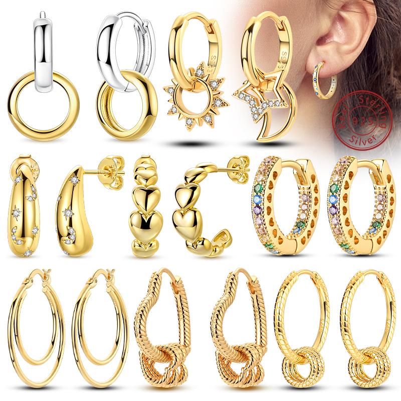 Earrings Original 925 Silver Stud Drop Hoop Earrings Rose Gold for Women Girls Party Wedding Birthday Jewelry Gift