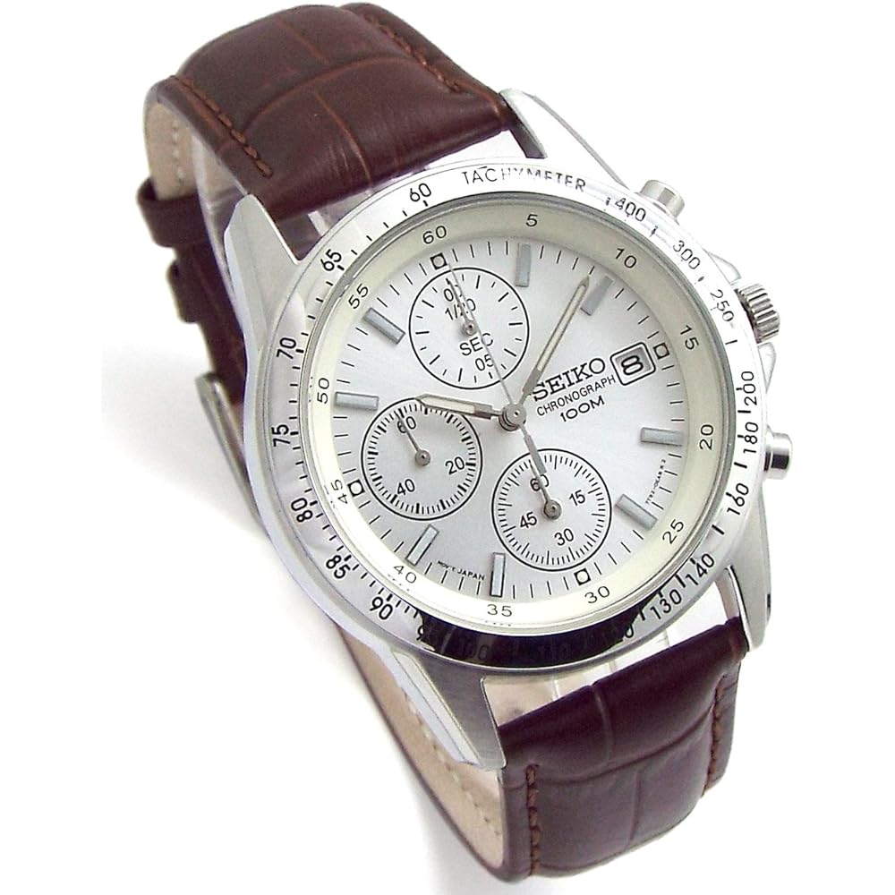 Seiko Chronograph SND363P1-DB White Dial Deep Brown Leather Strap Watch