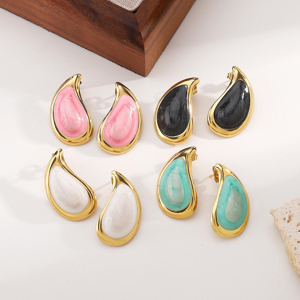 Vintage Oil Dripping Water Drop Geometric Stud Earrings French Minimalist Unique Temperament Stainless Steel Earrings For Women