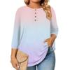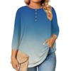 Women's Large Size Print 3/4 Sleeve Button Collar Top T-Shirt Bottoming Shirt