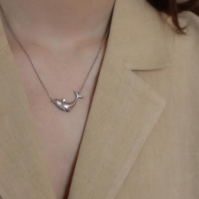 Silver Clavicle Chain Elegant Zircon Pendant Gift Whale Pendant Necklace Jewelry