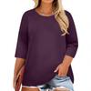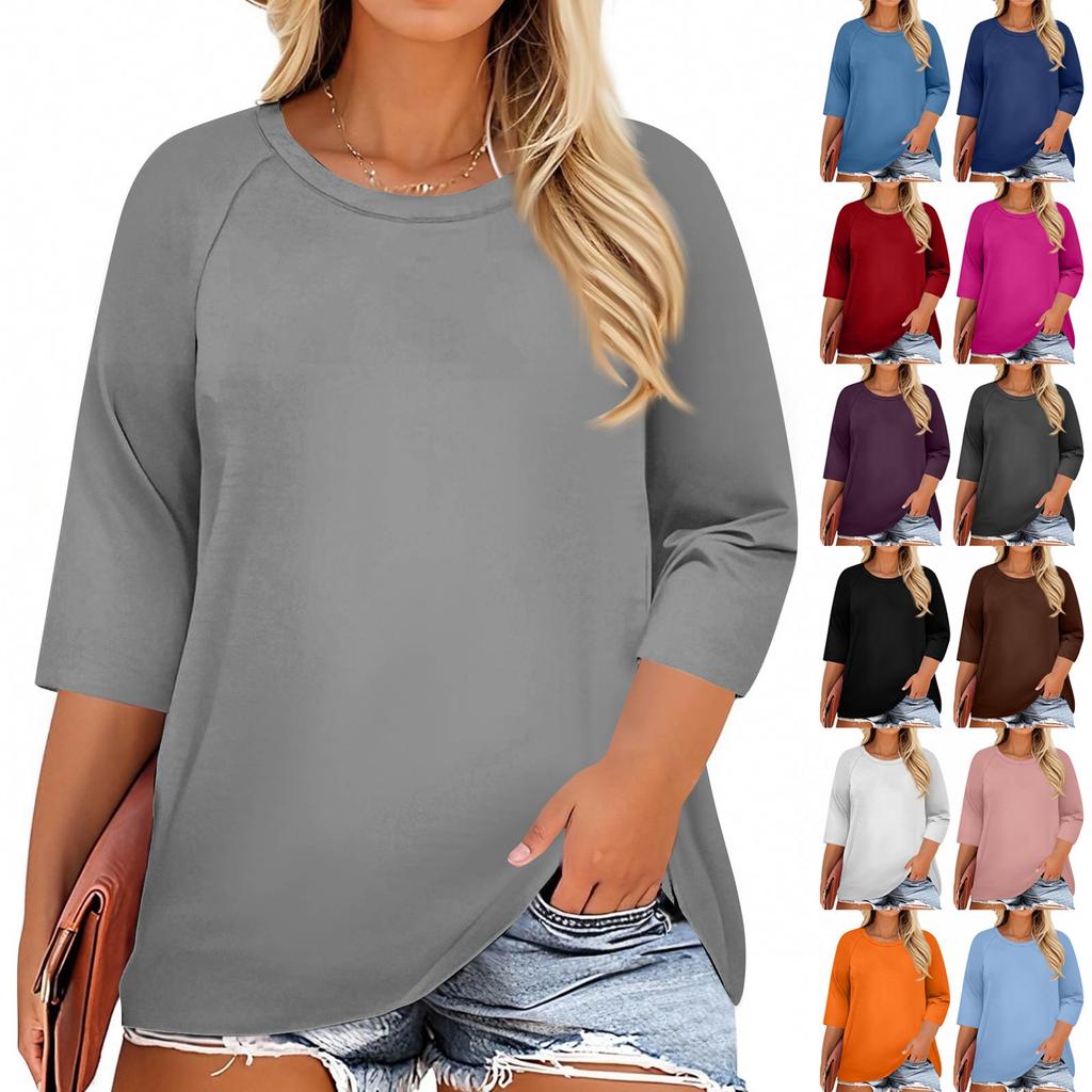 Women's Fashion Casual Colour Round Neck 3/4 Sleeve T-Shirt Top