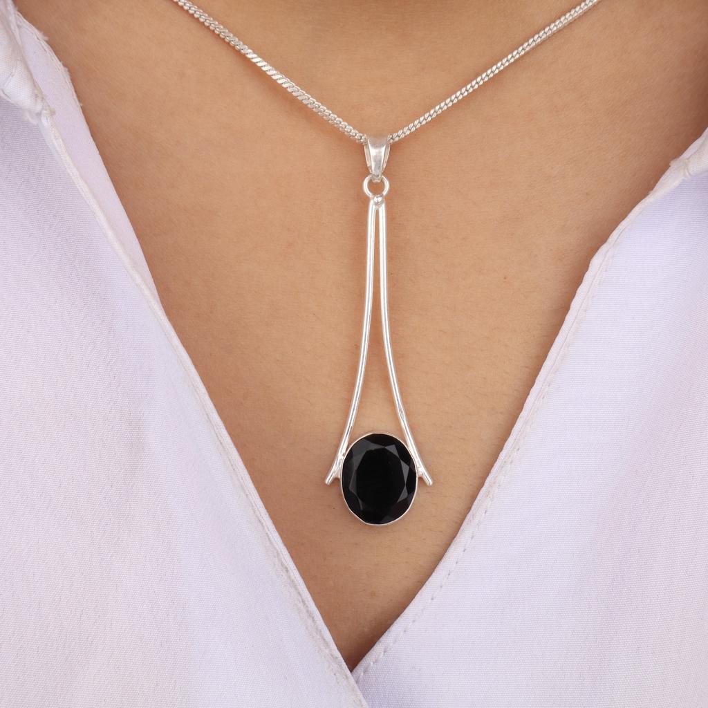 Black Onyx Gemstone 925 Sterling Silver Handmade Jewelry Women Pendant 1.79" For Thanksgiving Gift PP-69-16