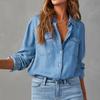 Women's Casual Long-Sleeved Denim Shirt With Pocket