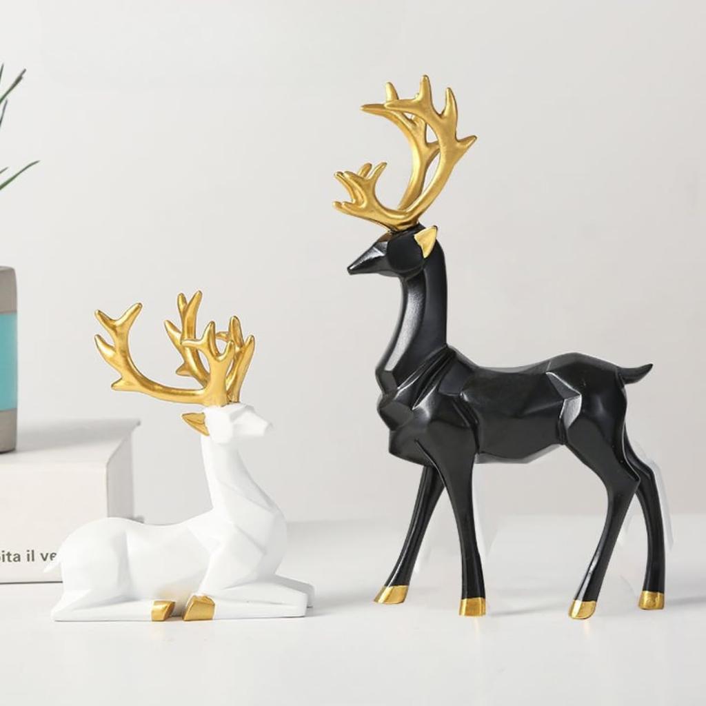 Interior Decor Reindeer Set Pair Ornament Figurine Stylish Cute Animal Figure Deer Entrance Ornament Cute Stylish Decor Cute Ornament Large Size Black