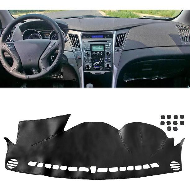 Leather Car Dashboard Dash Cover Pretector Mat Black Compatible with Hyundai Sonata 2011 2012 2013 2014