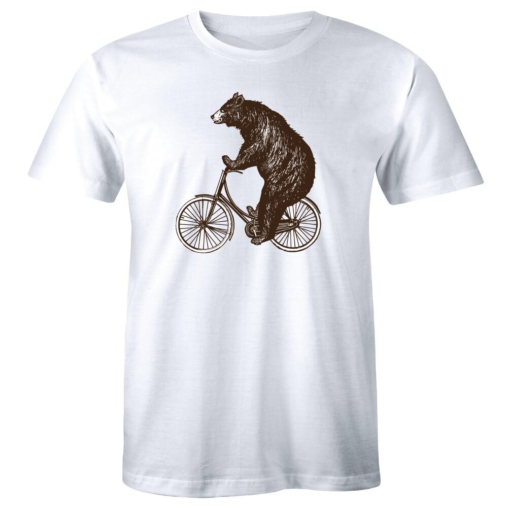 Bear Riding A Bicycle Funny TShirt for Woman Man Summer Fashion Casual Cotton Graphic T Shirts Streetwear Tops Tee