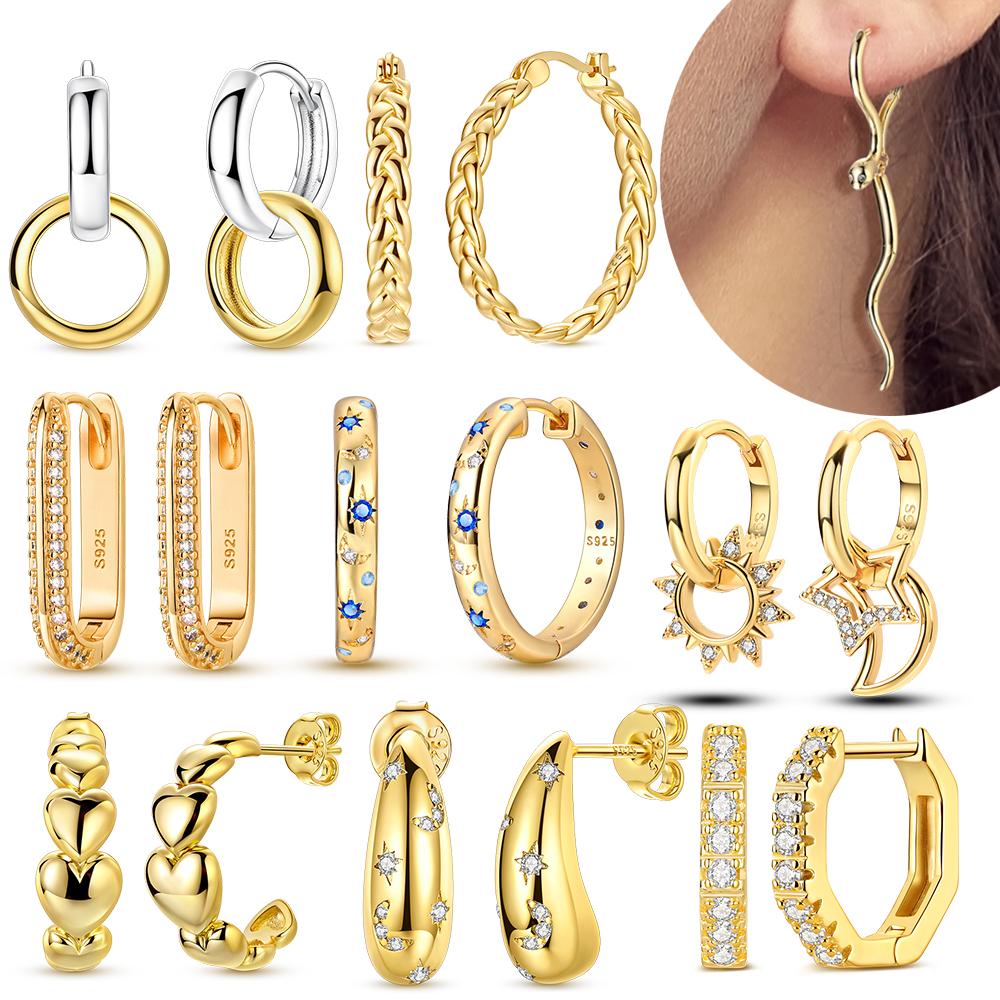 Earrings 925 Silver Stud Drop Hoop Earrings Rose Gold for Women Girls Party Wedding Birthday Jewelry Gift
