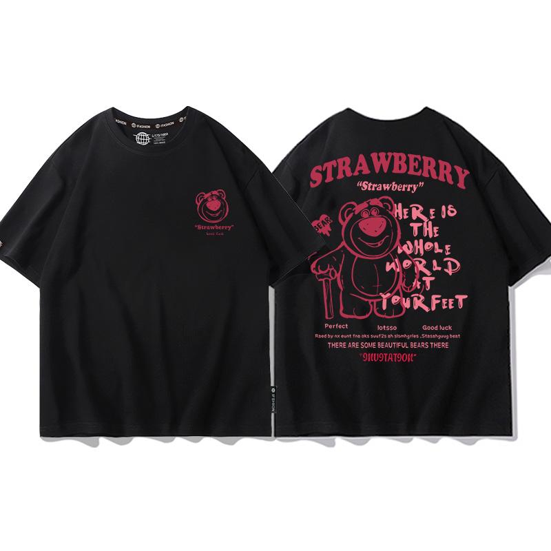 Strawberry Bear Joint TShirt Unisex Loose Fashion Brand Different Pure Cotton Clothes Summer Couples Short Sleeve
