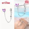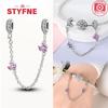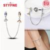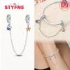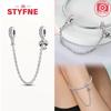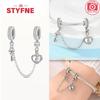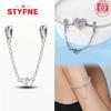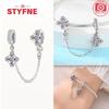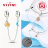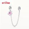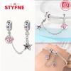 Real Silver 925 Star and Moon Flower Heart Safety Chain Wearable Jewelry Gift Bracelet DIY Beads for Women