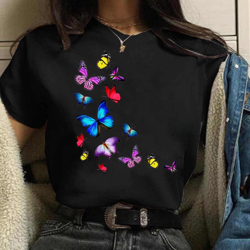 Summer Burst Cute Cartoon Butterfly Trend Letter Print Top T-shirt Woman Tops Oversized T Shirt Aesthetic Clothes