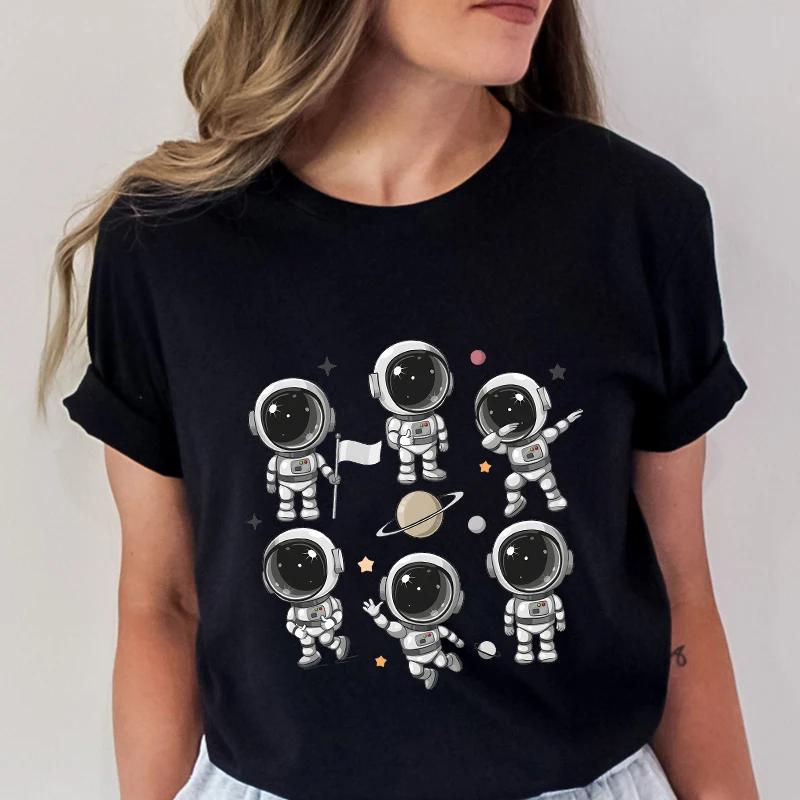 Harajuku Funny Aesthetic Tshirt Women Summer Fashion Cartoon Astronaut Graphic Y2k Tops Universe Space Punk Female Tees Shirt