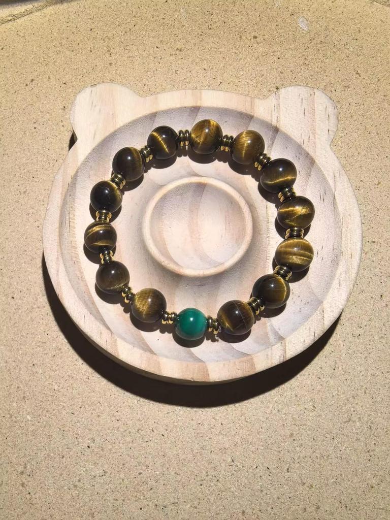 Natural Yellow Tiger Eye and Malachite Beaded Bracelet - High-End Crystal Birthday Gift