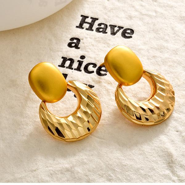 Attributes: Style: Fashion, Shape: Geometric, Material: copper alloy, Upper Material: copper alloy, Feature: Two-Tone Design, Crushed Ice Texture, Matte & Shiny Contrast, Light Luxury