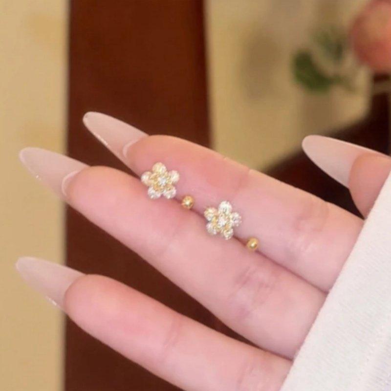Korean Style Zirconia Flower Stud Earrings - Sweet, Cool, Minimalist, High-End, Versatile Design