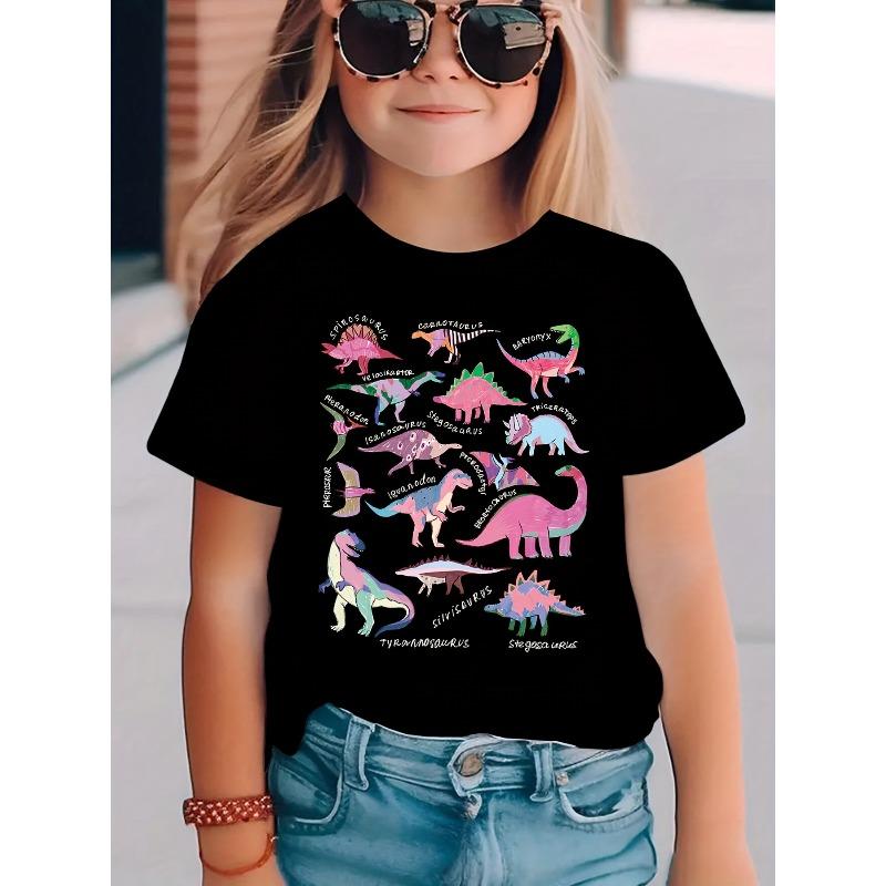 European sizes Summer Fashion Short-Sleeve T-Shirt for Girls Featuring a "Pink Dinosaur Collection" Print, a Casual And Versatile TopNY-DX4725