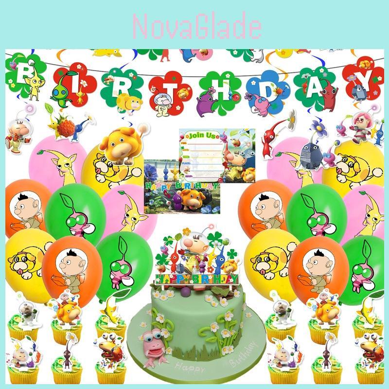 Pikmin-4 Birthday Party Decoration Set Paper Banner Balloons Cake Topper Cupcake Toppers And More!
