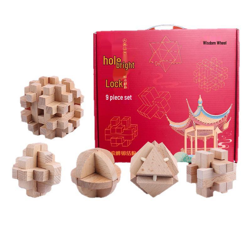 36-Piece Beech Wood Kongming Lock Set: Educational Building Blocks for Kids