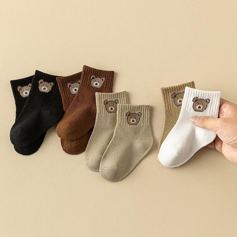 5Pair Cute Cartoon Bear Mid-Calf Docks Kid Socks Autumn/Winter Versatile Socks Soft Comfortable Breathable All-Season Socks