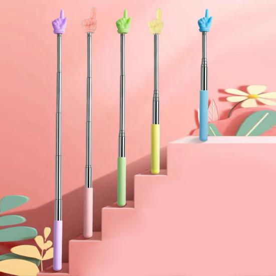 Horná časť ukazovacej tyče má tvar prsta, čo uľahčuje upútanie pozornosti, zatiaľ čo hladké a okrúhle končeky prstov zaisťujú, že nezanechá škrabance na tabuliach alebo bielych tabuliach..