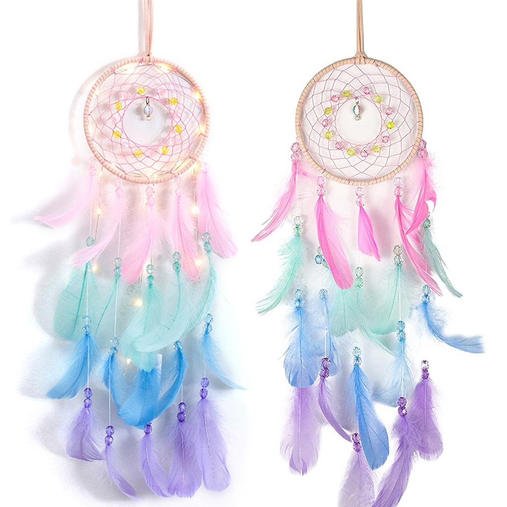 Dream Catcher Wall Decor Pink Feather Dreamcather Star Moon Wall Hanging for Girls Kids Bedroom Decor Birthday Christmas Gifts