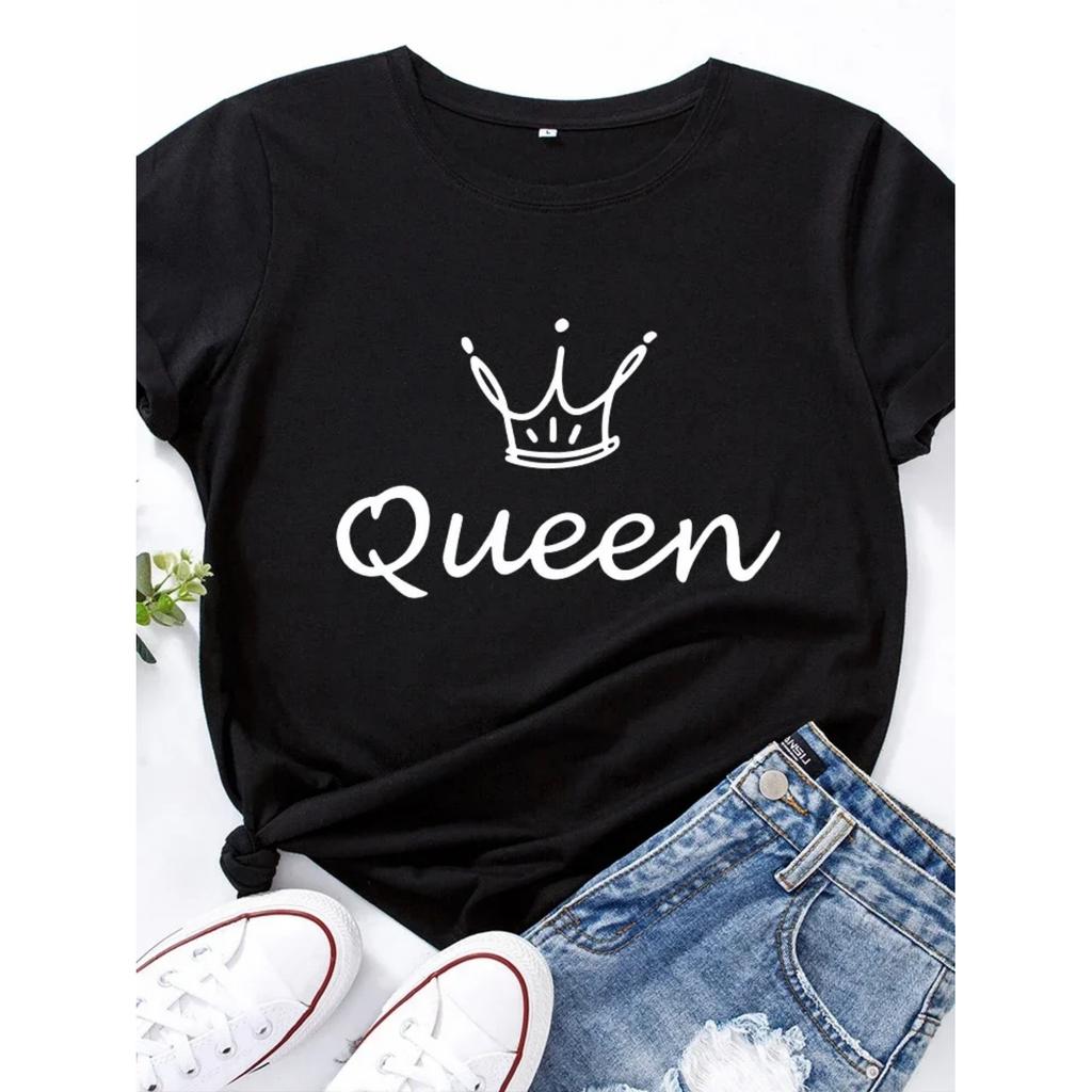 Crown Queen Print T Shirt Women Short Sleeve O Neck Loose Tshirt Summer Women Causal Tee Shirt Tops Camisetas Mujer
