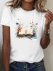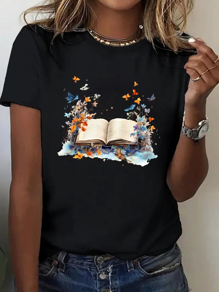 Printed TShirt with Book and Butterfly Pattern Spring and Summer Round Neck Harajuku Short Sleeve Casual Aesthetic Clothes