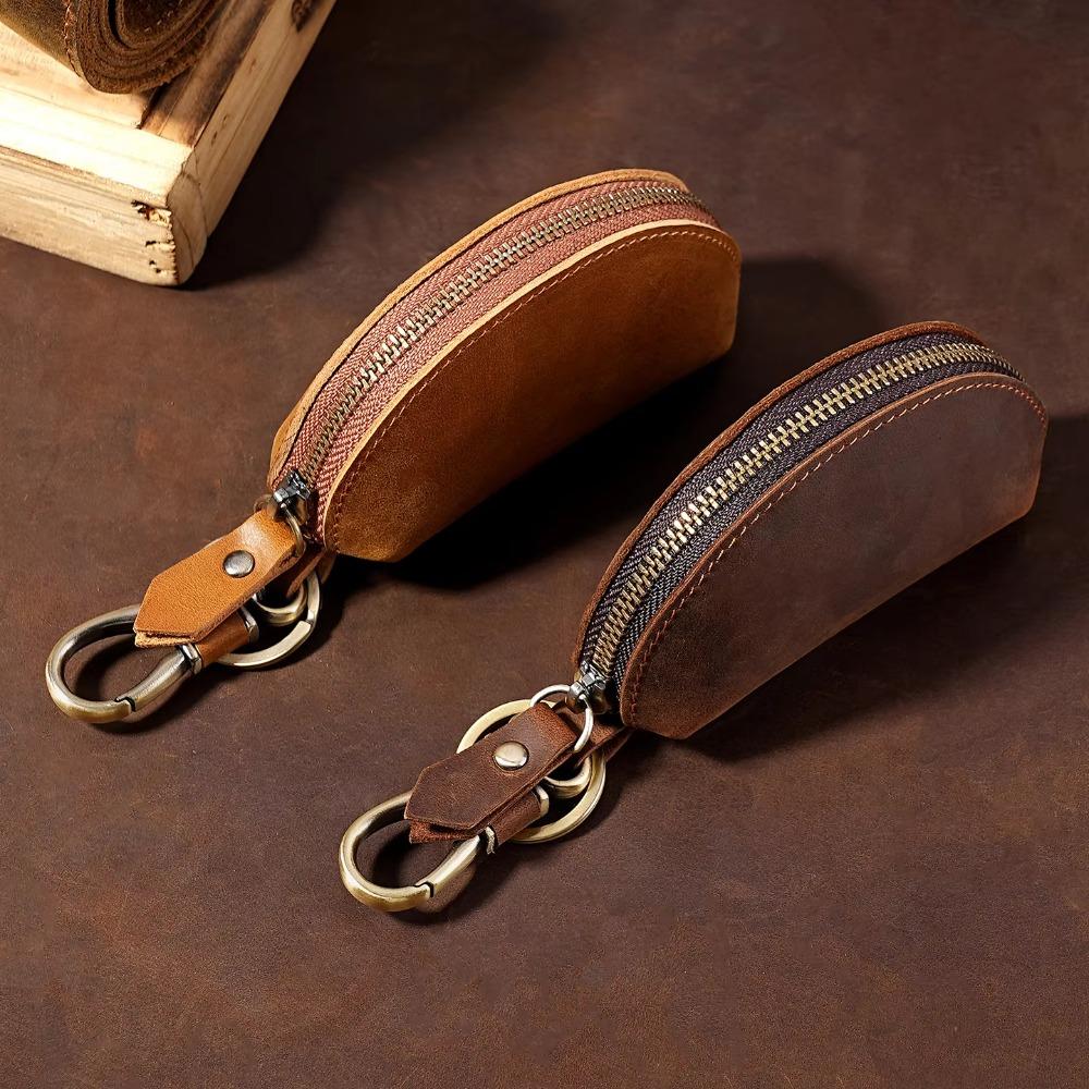 Crazy Horse Leather Car Key Pouch Genuine Leather Key Holder for Secure Keys Storage