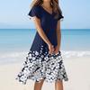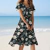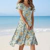 Women's Casual Fashion Flower Print Dress V Neck Short Sleeve Short Skirt