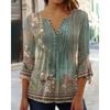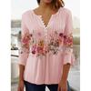 Spring and Summer New Women's Floral Print V-neck Short Sleeved Pleated Button Down T-shirt Base Shirt