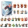 This Christmas advent calendar blind box features dragon-themed acrylic ornaments designed for holiday decor. The set includes 24 pieces, measuring approximately 26*18*3cm each, with vibrant colors in three variants. It supports easy hanging on Christmas trees or home decorations, ideal for celebrating the festive season. To maintain the ornaments' clarity, wipe clean with a damp cloth.