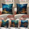 Chinese Style Landscape Printed Decorative Throw Pillows Polyester pillowcase, sofa decorative cushion cov Headboard Pillow