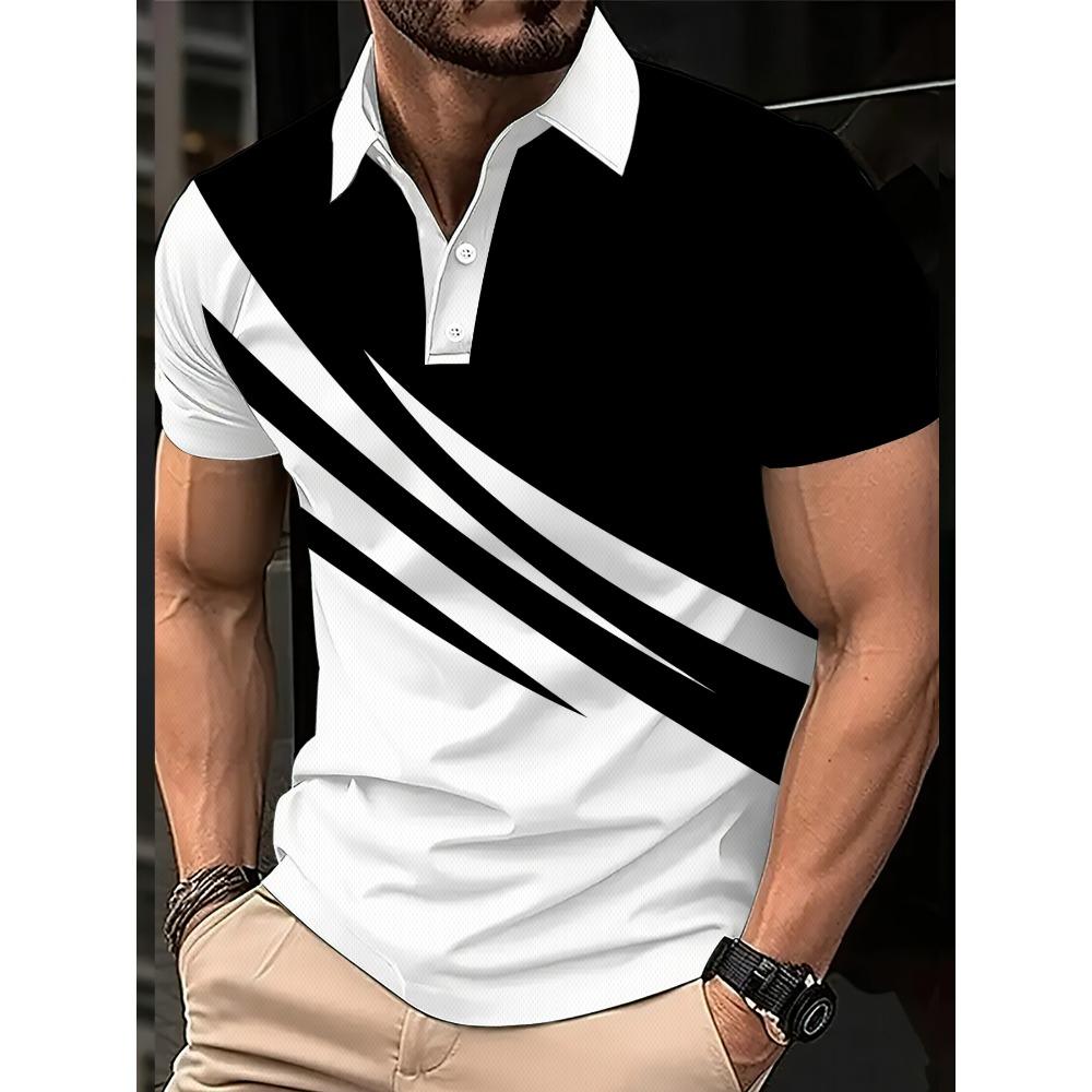 summer new men's POLO shirt features a casual fashionable comfortable soft and breathable 3D letter pattern print