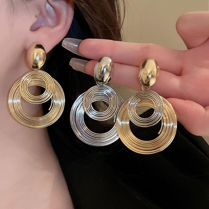 Large and Small Multi-layered Circle Silver Needle Earrings Fashion High-end Temperament Geometric Earrings for Women