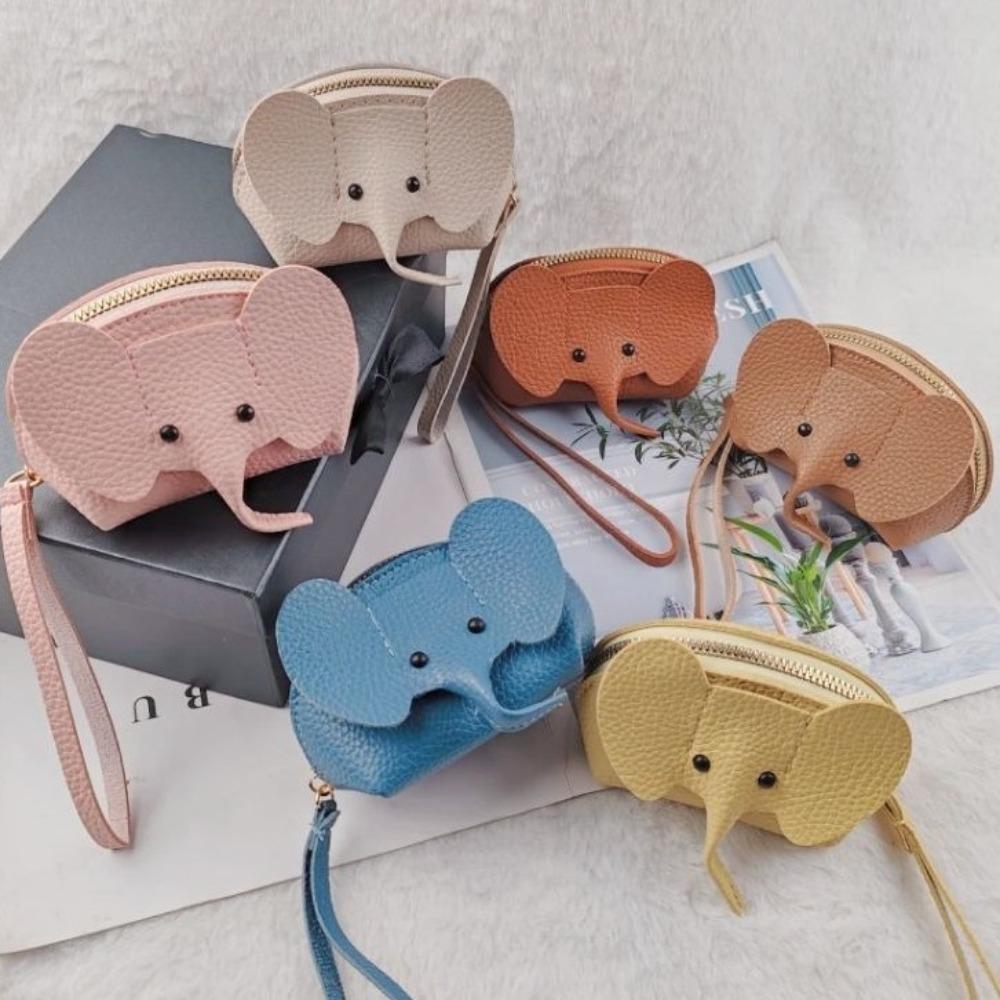 Fashion PU Elephant Bag Hasp Zipper Clutch Solid Color Bag Pendant with Loose Change Storage Vintage Coin Purse Home