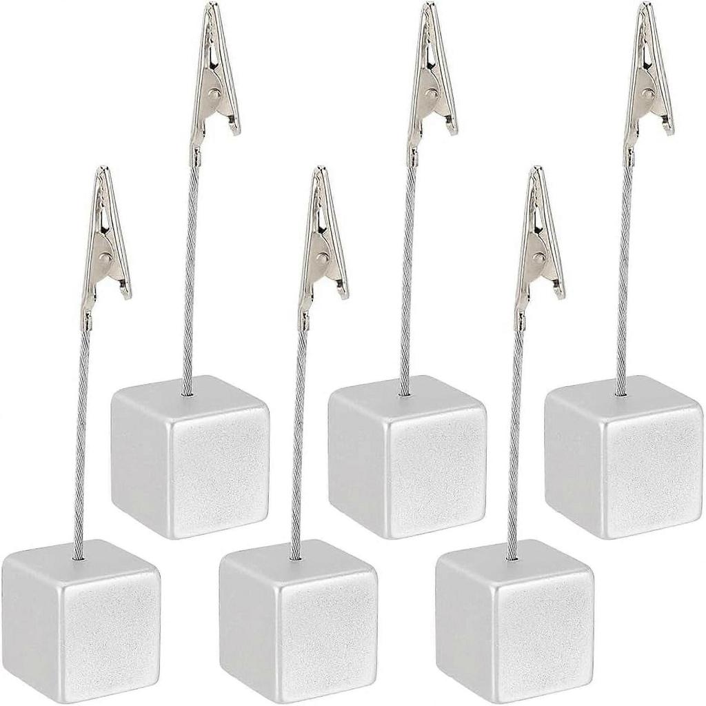 Square Base Resin Memo Holders with Steel Wires & Iron Alligator Clip Silver 115mm