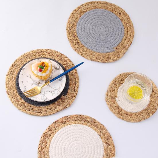 Handwoven Coaster Heat-Resistant Round Placemats Natural Non-Slip Coaster Eco-Friendly Table Decor for Home Kitchen Dining