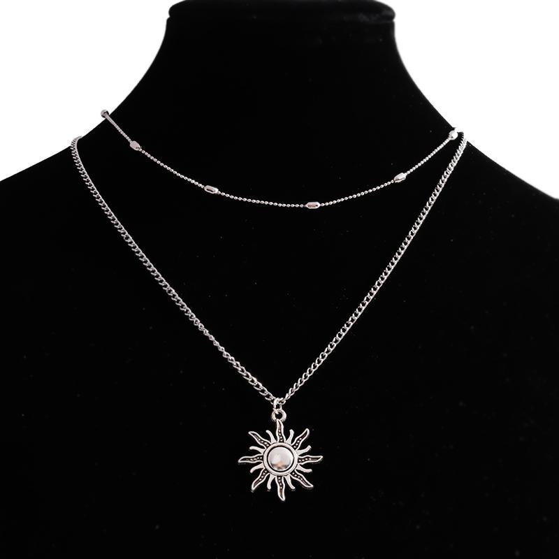 Vintage Silver Color Sun Pendants Necklaces for Women Korean Simple Style Multi-Layer Beads Chain Necklace Fashion Party Jewelry
