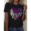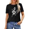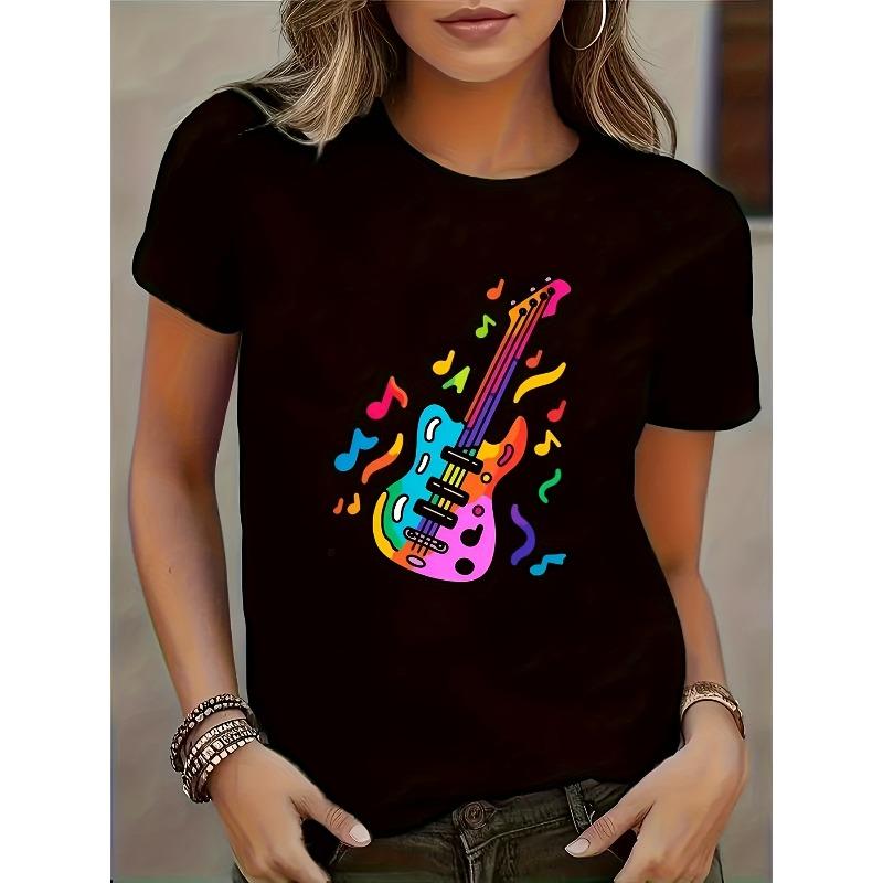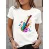Women's Vibrant American Guitar Print Tee Musical Notes Casual Short Sleeve Crew Neck Top