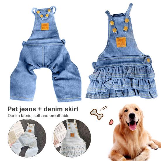 Pet Denim Jumpsuit Solid Color Cosplay Anti-fade Pet Jean Overalls Strap Dress Clothes for Teddy