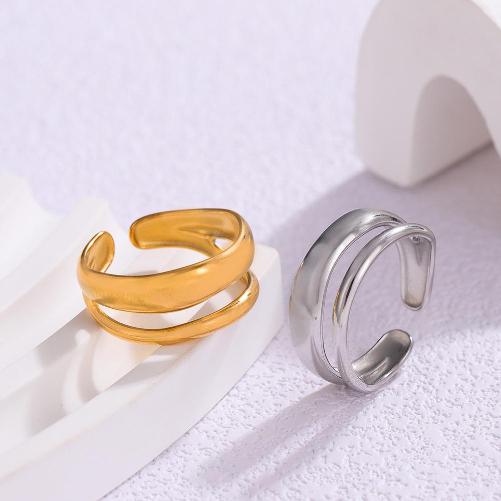 Gold-Plated Stainless Steel Geometric Ring for Women: Simple, Chic, Non-Fading Jewelry
