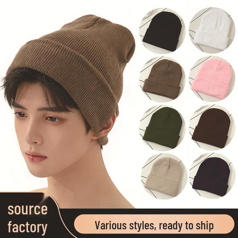 Korean Style Acrylic Knit Hat: Simple, Warm, Versatile Wool Hat with Ear Protection for Autumn and Winter