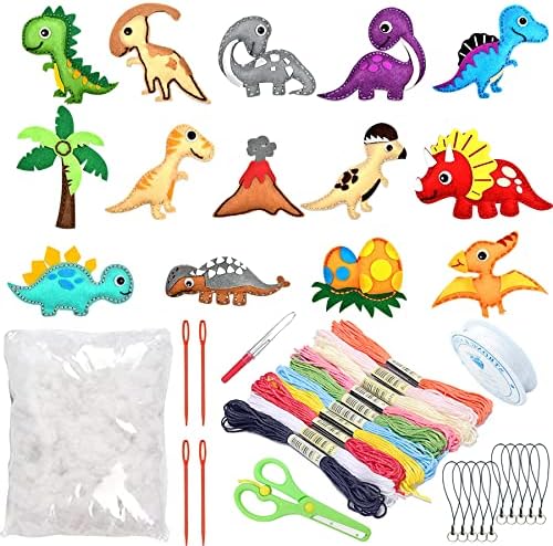 Allazone Dinosaur DIY Felt Sewing Kit, 14 Animal Shapes Felt Craft Kits for Kids, Educational Sewing Starter Kit for Beginners
