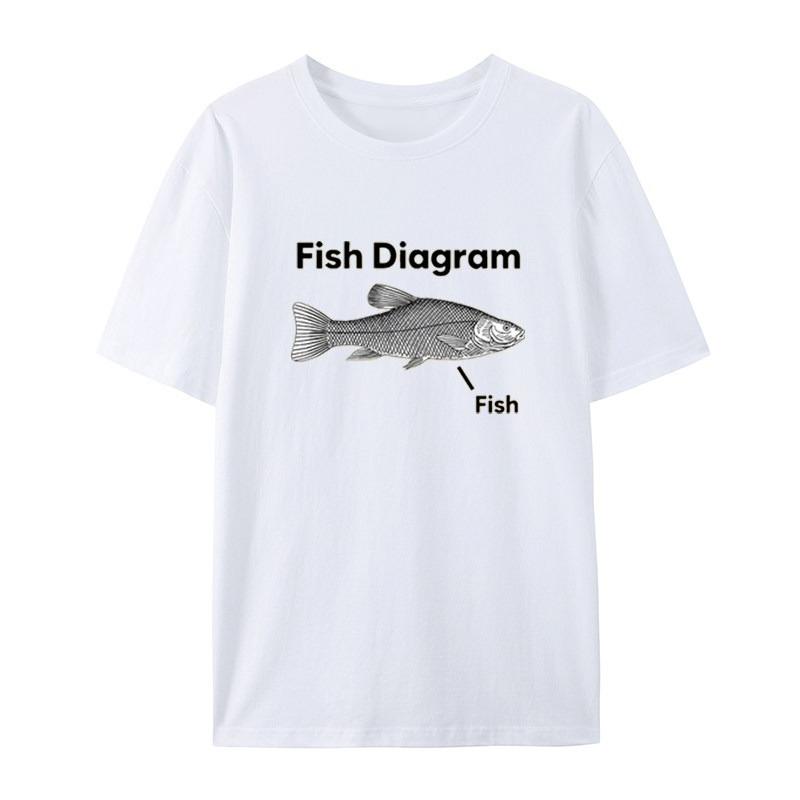 Interesting Fish Image Meme White Casual TShirt Mens and Womens Luxury Brand Top