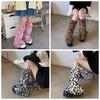 Leopardmönstrade Köldtåliga Fåriga Slouchy Strumpor Halvutsvängda Benvärmare Spice Girl Vintervarmt Knäskydd Tjocka Benvärmare med Vida Ben