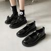 Fashion Black leather shoes for spring summer flat bottom shallow mouth soft sole comfortable simple versatile women's single shoes